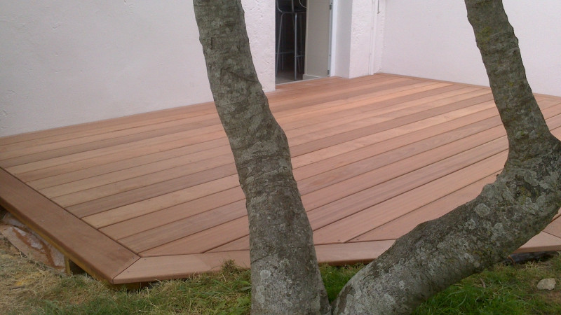 Terrasse en bois exotique en partie sur dalle béton et sur terre battue. Angoulins- (Charente-Maritime) Toutes les photos du projet TERRASSE MOABI ()